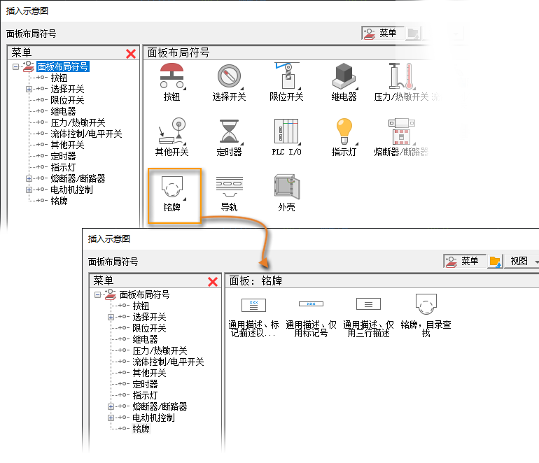 使用面板图标菜单插入铭牌。