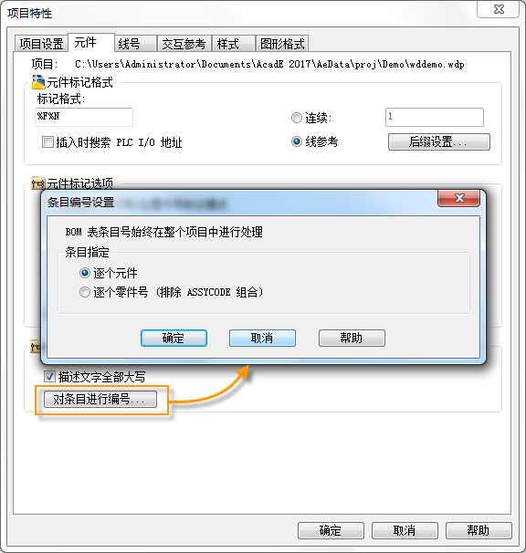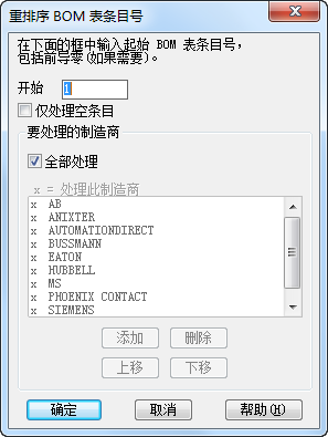 将首先处理面板元件,随后处理原理图元件。具有相同目录指定的元件会获得相同的 BOM 表条目号。