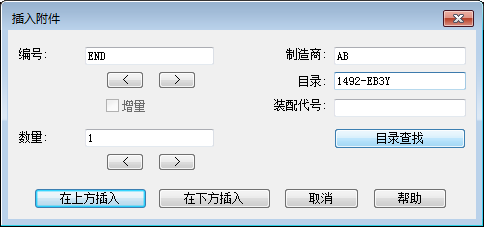 - “目录代号指定”选项卡:除在“端子排”选项卡中可执行的操作外,还可以指定、删除、复制目录零件号,或将其粘贴到端子上。