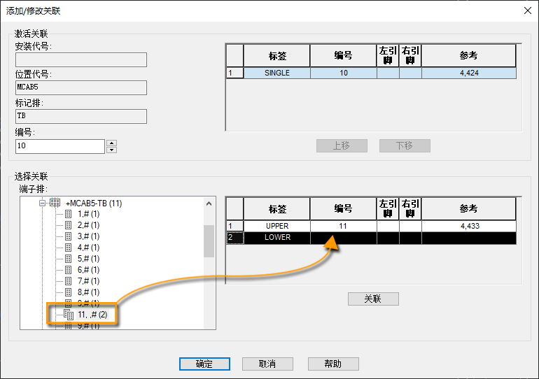 使用端子排编辑器可以管理整个端子排。您可以更改目录指定、添加跳线、关联端子、添加备用端子和附件、插入面板端子排等等。稍后,在“面板布局”主题中,您将了解如何使用端子排编辑器。 查找