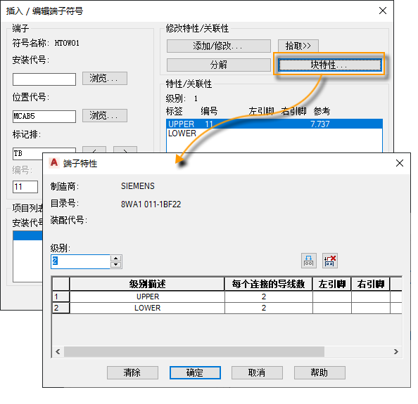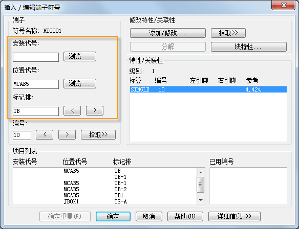 您可以在“插入\编辑端子符号”对话框上查看和编辑端子的特性。 查找