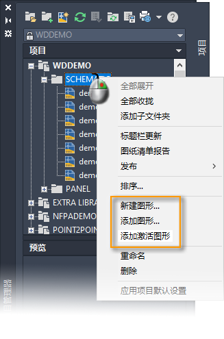 使用项目管理器可以从任何打开的项目中复制单个图形,并将其添加到激活项目。
