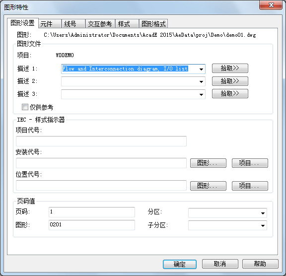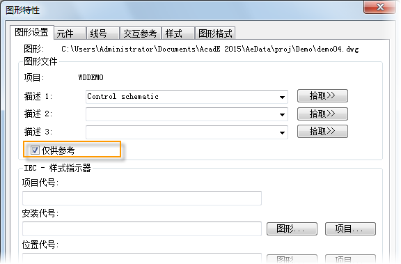 “图形特性”可控制 AutoCAD Electrical 工具集 中的许多功能。它们包括: