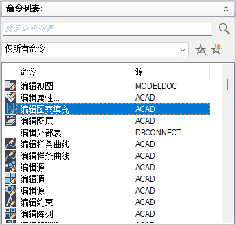 “命令列表”窗格的顶部是“搜索命令列表”框,该框使用户可以根据输入的文字字符串过滤“命令”列表。文字字符串将与命令名的任何部分匹配,并且结果会显示在“命令”列表框中。