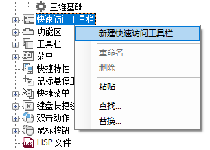 新的快速访问工具栏(称为“快速访问工具栏1”)将置于“快速访问工具栏”节点的底部。