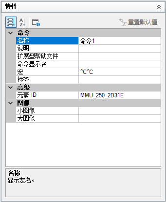 - 在“名称”框中为命令输入一个名称。该值在添加到用户界面元素时将用作默认名称,并将用作工具提示的一部分。