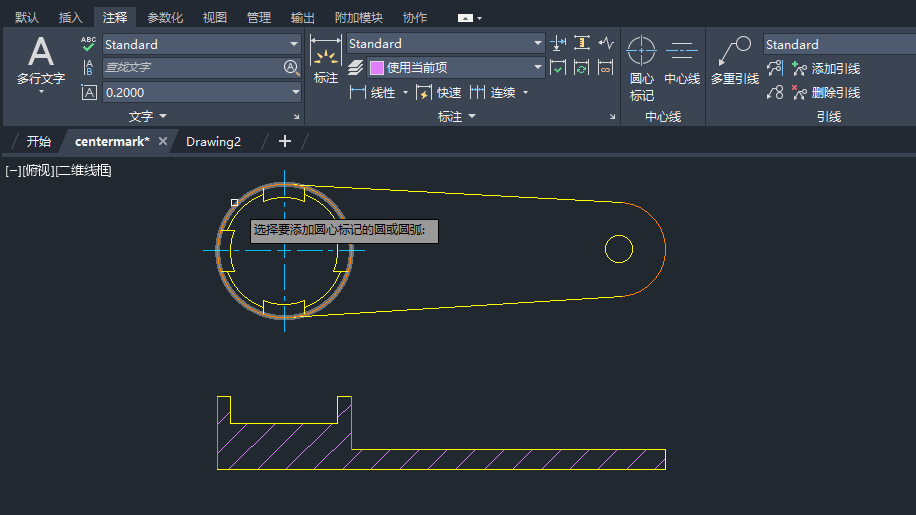 有效标记圆弧或圆的中心,或绘制一条通过两条线或多段线之间外观中点的线。
