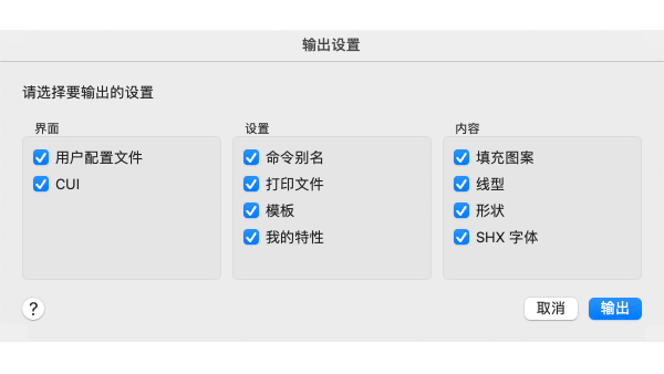 将设置从一台计算机传输到另一台计算机。设置可以包括用户配置文件、工具栏和工具集自定义、命令别名、打印设置、模板以及“特性”选项板的“我的特性”设置。