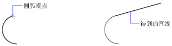 创建圆弧后,即可开始创建与该圆弧在端点相切的直线。只需指定线长。