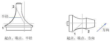 圆弧凸度的方向由指定其端点的顺序确定。可以通过输入半径或在所需半径距离上指定一个点来指定半径。