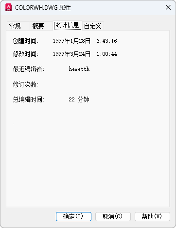 显示编辑该图形的总时间。此值存储在 TDINDWG 系统变量中。