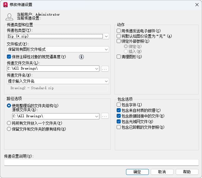 如果此字段保持不变,则将在包含第一个指定的图形文件的文件夹中创建传递文件。在图纸集上下文中,将在包含图纸集数据 (DST) 文件的文件夹中创建传递文件。(不适用于 AutoCAD LT。)