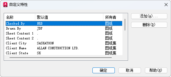 SHEETSET(命令) 查找在图纸集名称上单击鼠标右键 > “特性” > “编辑自定义特性”