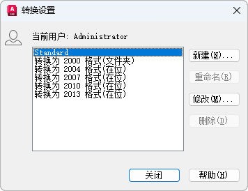 删除当前亮显的转换设置。不能删除“标准”转换设置。