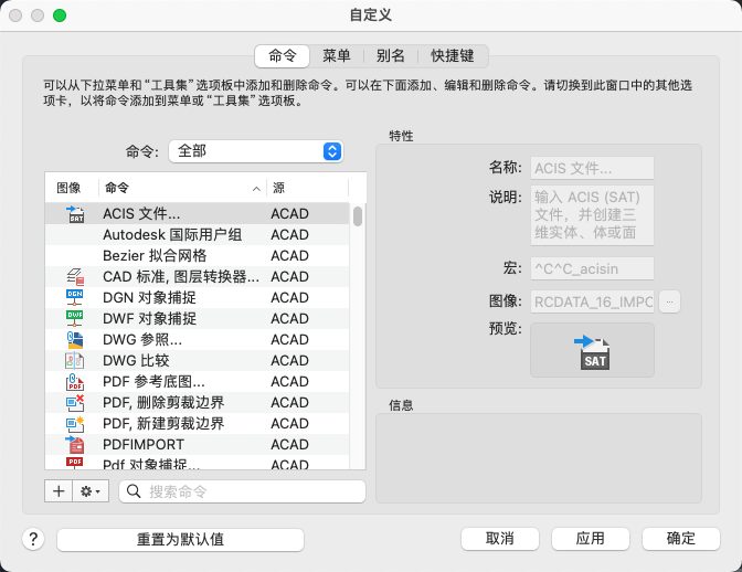 自定义命令可用于启动核心 AutoCAD 2025 命令或由第三方定义的命令。命令还可以包含 AutoLISP 代码。