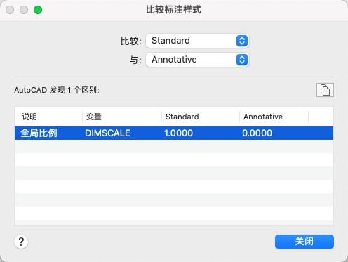 比较两种标注样式的特性或显示一种标注样式的所有特性。