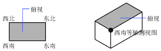 要理解等轴测视图的表现方式,请想象正在俯视盒子的顶部。如果朝盒子的左下角移动,可以从西南等轴测视图观察盒子。如果朝盒子的右上角移动,可以从东北等轴测视图观察盒子。
