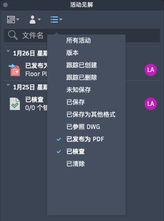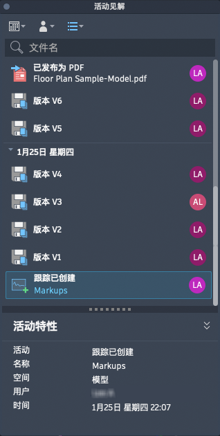 注: 当“活动见解”选项板处于关闭状态时,也会记录活动。下次打开选项板时,将显示所有活动。