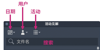 “活动见解”选项板即会打开,以显示当前图形的活动。