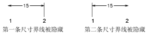 不显示尺寸界线。“延伸线 1”不显示第一条延伸线;“延伸线 2”不显示第二条延伸线。(DIMSE1 和 DIMSE2 系统变量)