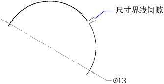 DIMSE1 系统变量用于控制在半径标注或直径标注位于圆弧末尾之外时,是否使用尺寸界线进行绘制。如果未取消圆弧尺寸界线的显示,则圆弧和圆弧尺寸界线之间会具有间距。所绘制间隔的大小通过 DIMEXO 系统变量控制。