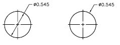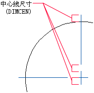 根据标注样式设置,自动生成直径标注和半径标注的圆心标记和直线。仅当尺寸线置于圆或圆弧之外时才会创建它们。用户可以直接使用 DIMCENTER 命令创建中心线和圆心标记。