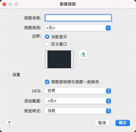 通过当前视口中显示的内容或者定义矩形窗口,保存新的命名视图。