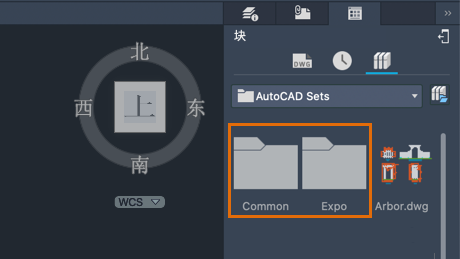 选定文件夹中的文件夹现在显示在“块”选项板中。双击文件夹以显示该文件夹中的图形或文件夹。