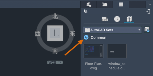 选定文件夹中的文件夹现在显示在“块”选项板中。双击文件夹以显示该文件夹中的图形或文件夹。