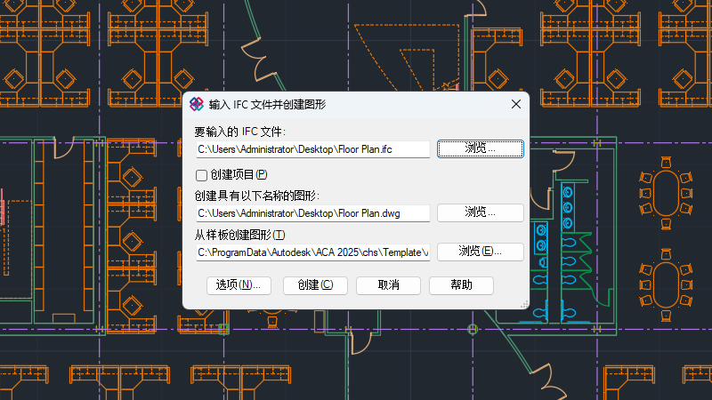 IFC 输入或输出:现在,在生成图形文件后,IFC 输入过程会成功完成。