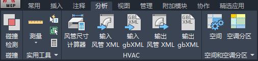 “分析”选项卡包含在当前工作空间中的对象上进行工程计算所需的所有命令。从 HVAC 工作空间到电气和其他工作空间,这些计算工具各不相同。