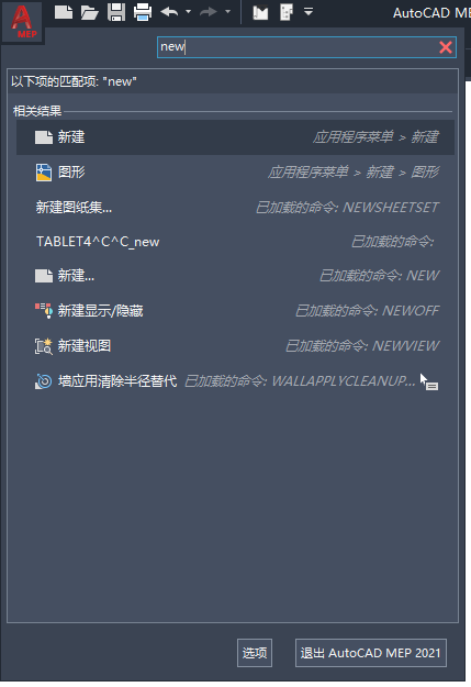 在应用程序菜单中,可以搜索一个命令,然后从匹配项列表中选择该命令。将从以下位置检索搜索结果: