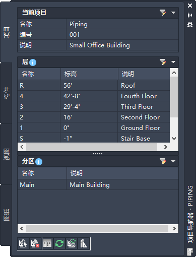 项目导航器可以集中执行项目特定的任务,例如定义建筑标高和分割(翼部)、创建项目图形以及创建打印图纸。