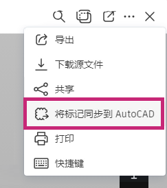 注: 在 AutoCAD for Mac 中,无法从 Autodesk Docs 打开和输入标记。但在收件人在 Windows 中输入标记后,同步的标记将在 AutoCAD for Mac 上可用。如果 Autodesk Docs 中的标记发生更改,则下次打开图形或跟踪时会弹出一条通知。该通知包含一个链接,用于在 Web 浏览器中打开 Autodesk Docs 中 PDF(带标记)。