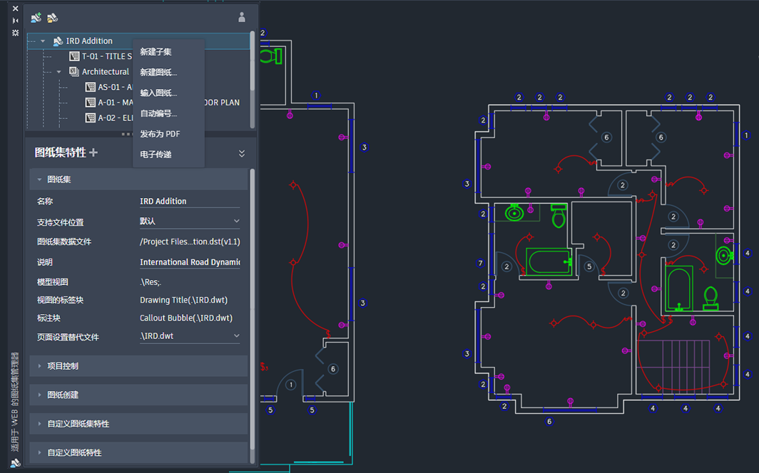 在图纸集管理器的树状图中,团队的其他成员可以自动看到对图纸集所做的更改。