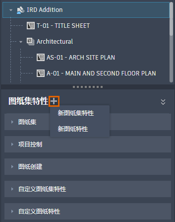 - 图纸集特性通常特定于“项目”(例如,合同号)。