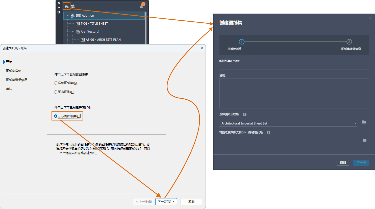 现在,当打开基于云的 DST 文件时,将显示适用于 Web 的图纸集管理器。