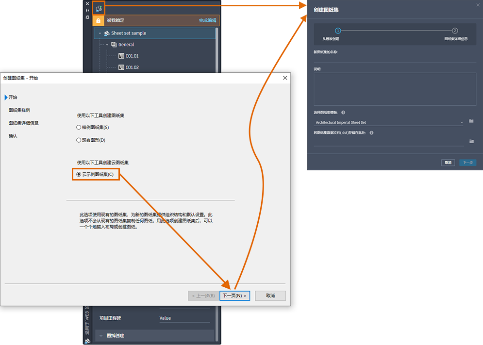 在此版本中,无论您使用的是 AutoCAD 桌面还是 AutoCAD Web 应用程序,适用于 Web 的图纸集管理器都可以让您轻松访问以在 Autodesk Docs 中创建图纸集。