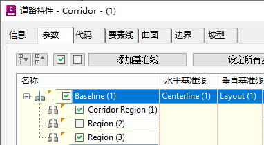对于长道路或道路网络,可以创建多个区域以进行建模。一般情况下,道路区域用于标记不同装配的使用,并在一个装配的结束处和另一个装配的开始处具有区域边线。但是您也可以在不更改装配的情况下添加区域。其他区域的值为控件 — 您可以使用“道路特性”对话框关闭当前操作不需要的区域建模,如图 13 中所示。这可以提高道路重新生成的速度。