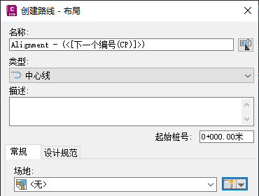使用“创建路线 - 布局”或“创建路线 - 从多段线”对话框创建路线时,默认设定是创建无指定场地 <无> 的路线,如图 2 中所示。