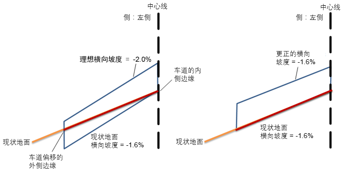 更正的横向坡度始终设置为等于理想横向坡度。