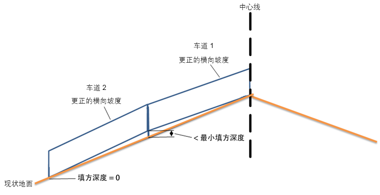 将计算并应用更正的横向坡度,但不会应用高程调整或摆动。在某些情况下,可能无法满足最小填方深度。