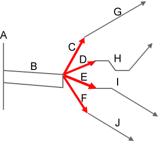 可将多个条件挖方或填方部件附着到装配上的同一个点。这包括多个挖方和/或多个填方条件挖方或填方部件,如下图所示。