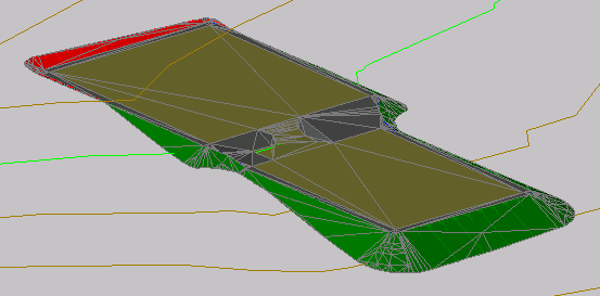 本教程中使用的图形包含一个曲面和一个由双层(通过小斜坡连接)组成的建筑物地基。该建筑物地基顶部的高程为 402 英尺,底部为 400 英尺。