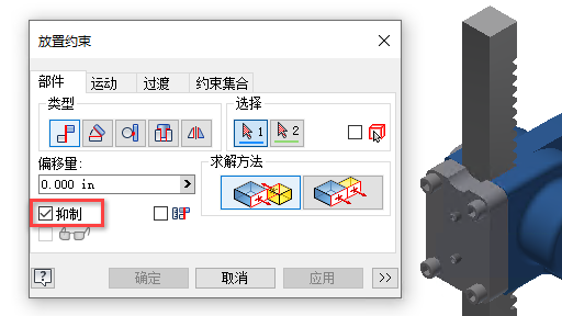 约束:使用新对话框选项时,抑制约束变得比以往更加简单。可以创建约束并同时将其抑制,然后在选择时解除抑制该约束。