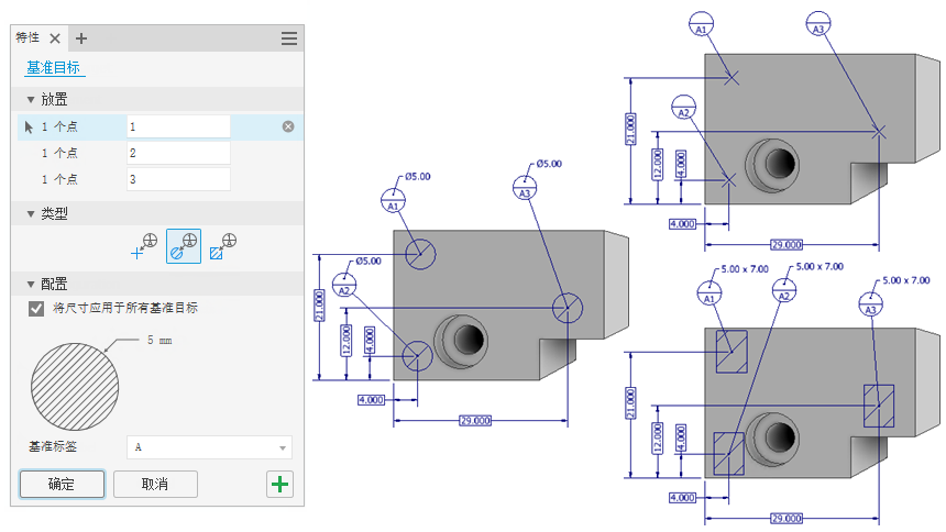 向“常规标注”面板中添加了“基准目标”命令,以便您可以在不规则曲面上建立基准。