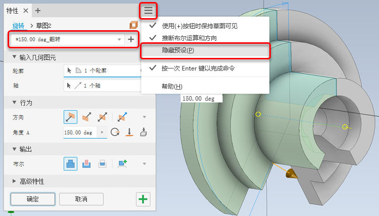 拉伸和旋转:“拉伸”和“旋转”特征的所有特性面板设置都保留在预设中,以方便重用。