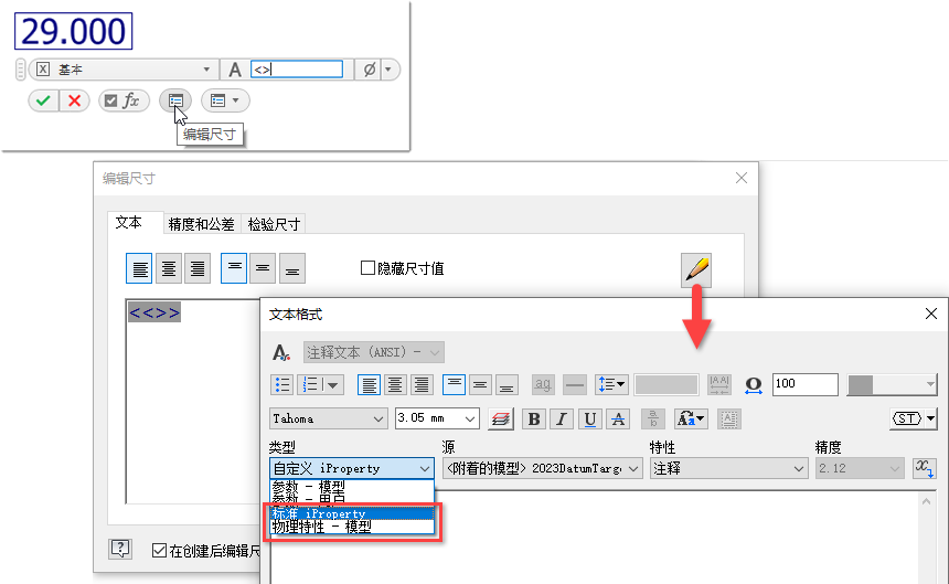指引线文本现在可以包含标准 iProperty、自定义 iProperty 以及属于附着零件父项的实例特性。