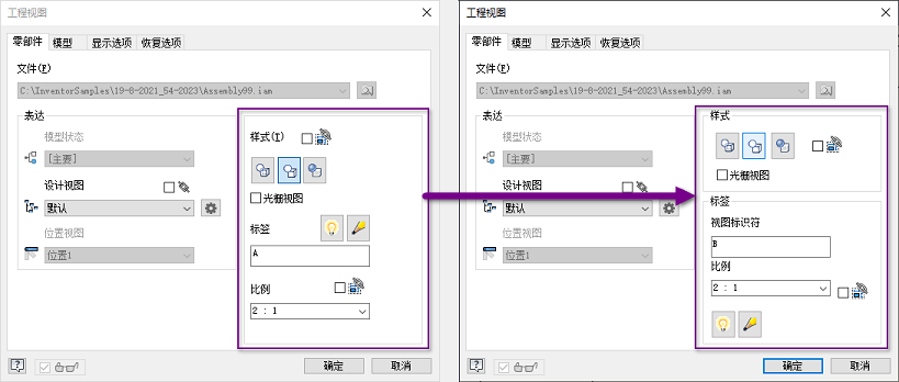 使用“编辑局部视图特性”可以将局部视图边界形状从圆形更改为矩形。
