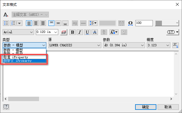模型草图文本:在零件草图文本中使用激活模型中的标准 iProperty 和自定义 iProperty。